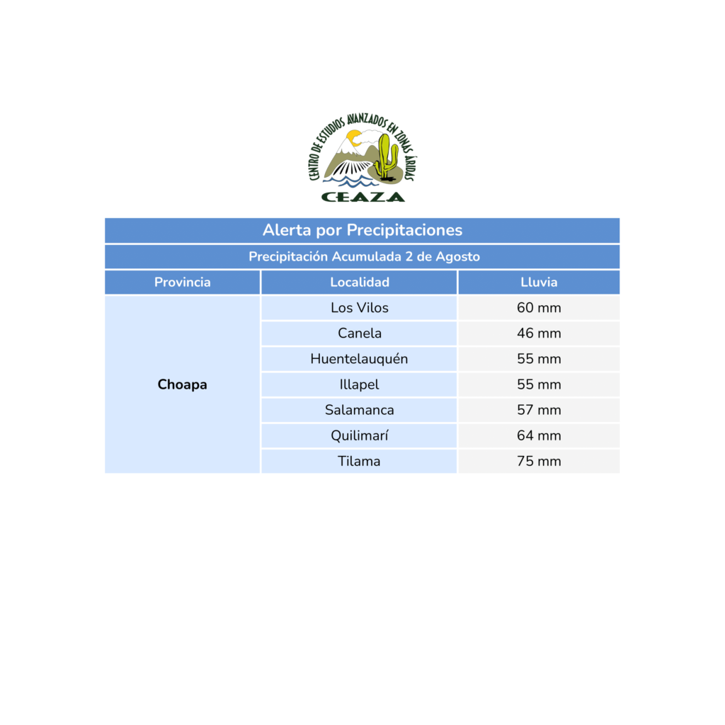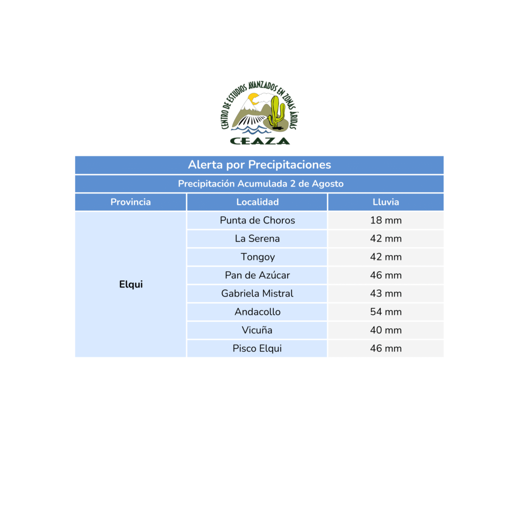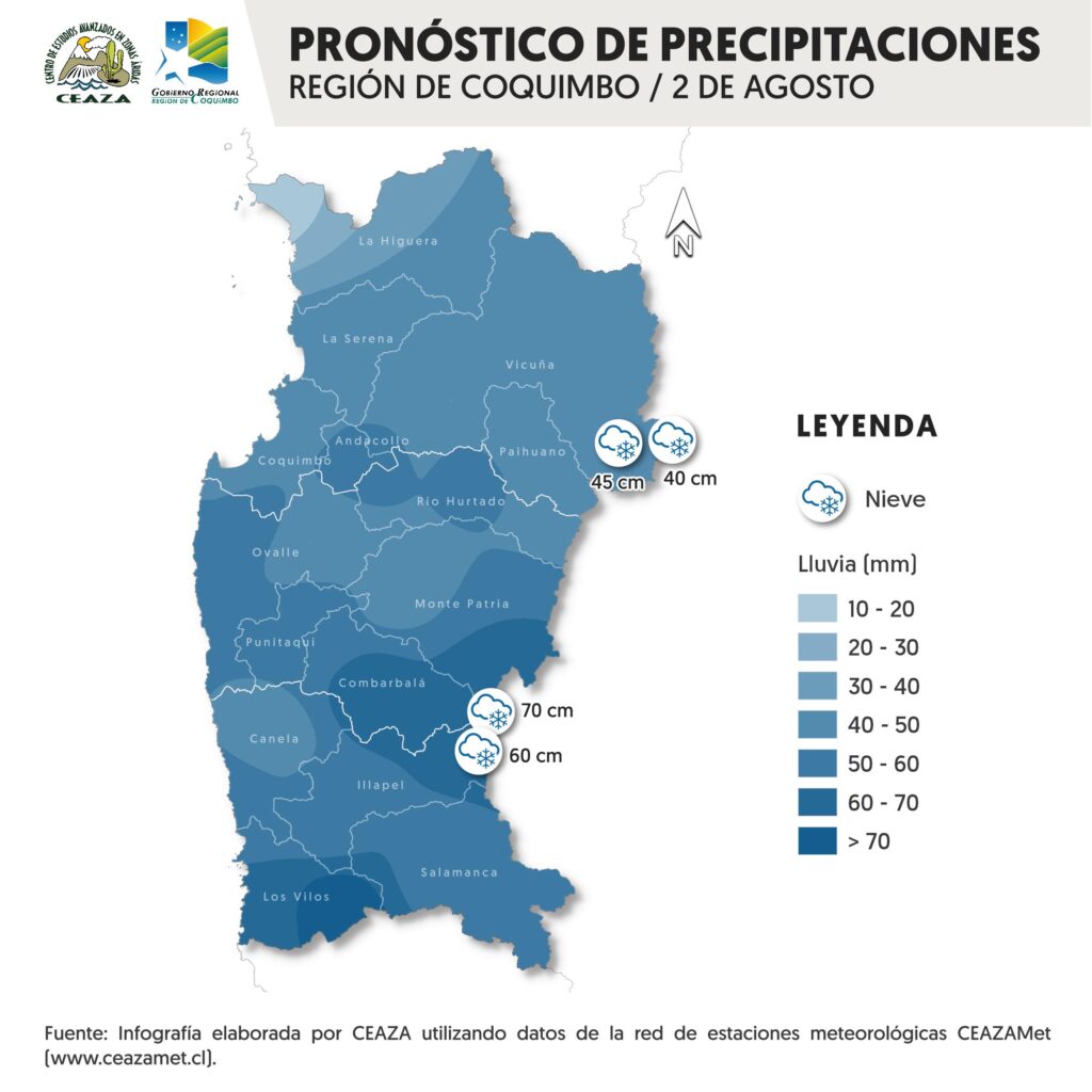 Actualizan pronóstico de precipitaciones para este 2 de agosto en la región de Coquimbo